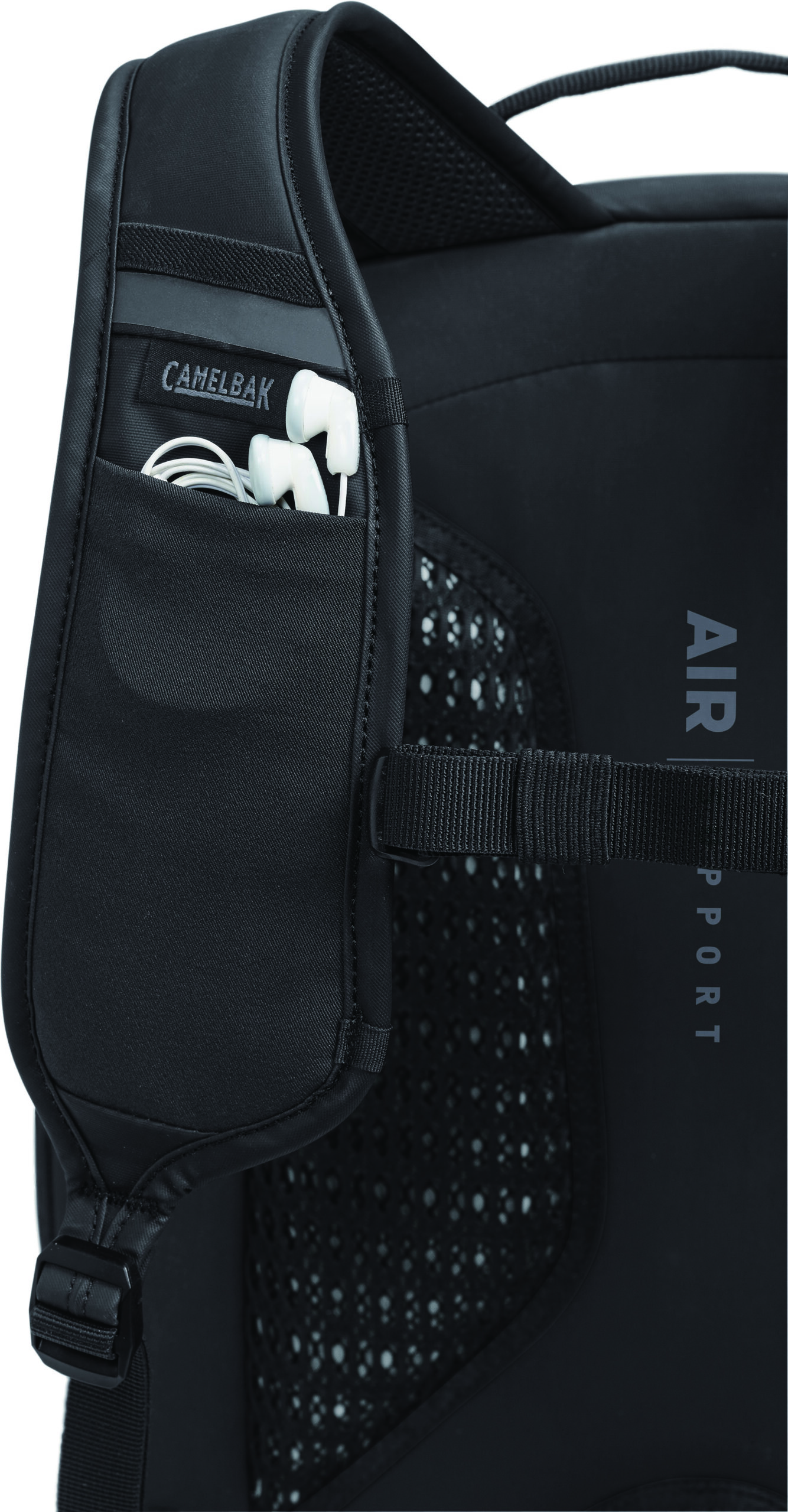 ●スマートフォンなど使用頻度の高いものの収納に便利なショルダーハーネスポケットを左右に装備。