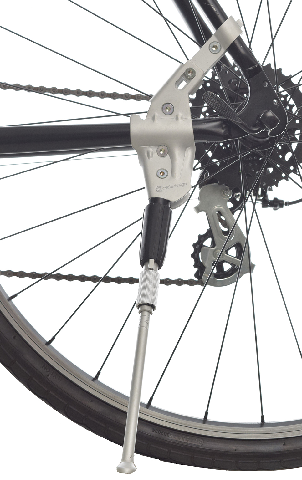 ●チェーンステーとシートステーの角度が開いているフレームにフィットするキックスタンド。