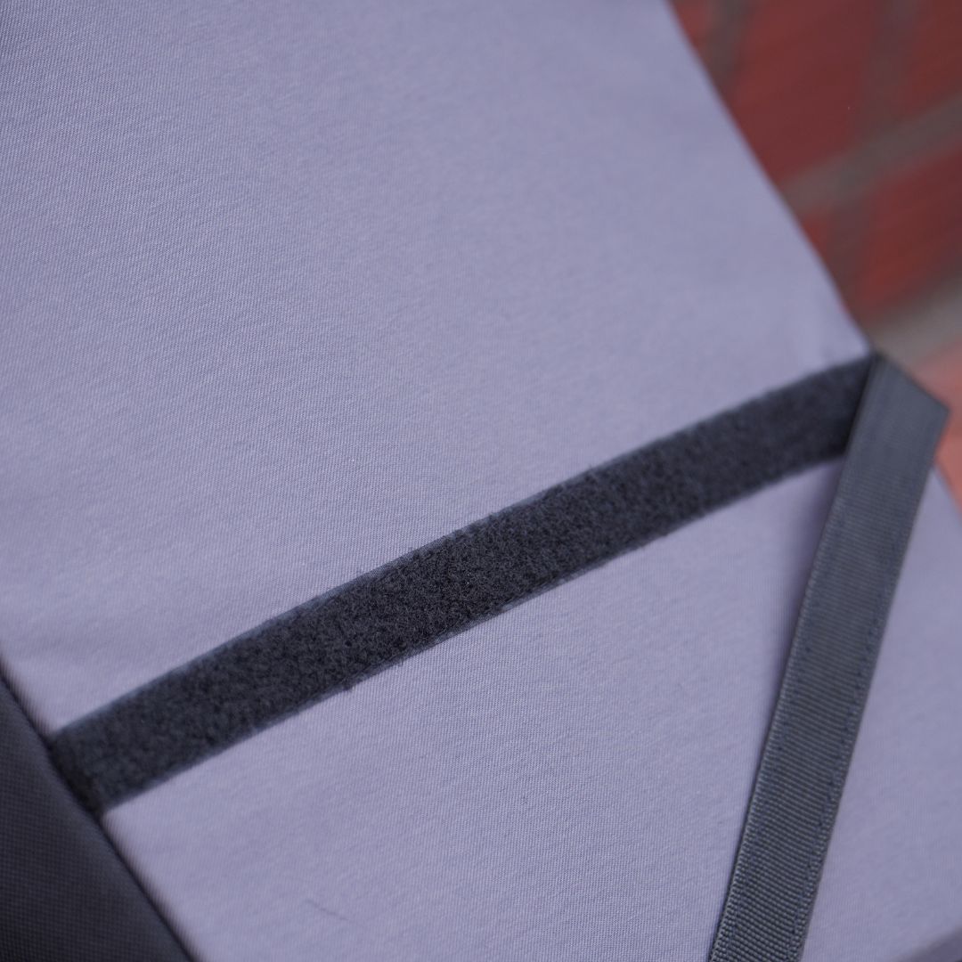 キャリアの下部は面ファスナーで固定し、バタつきを防止します。
