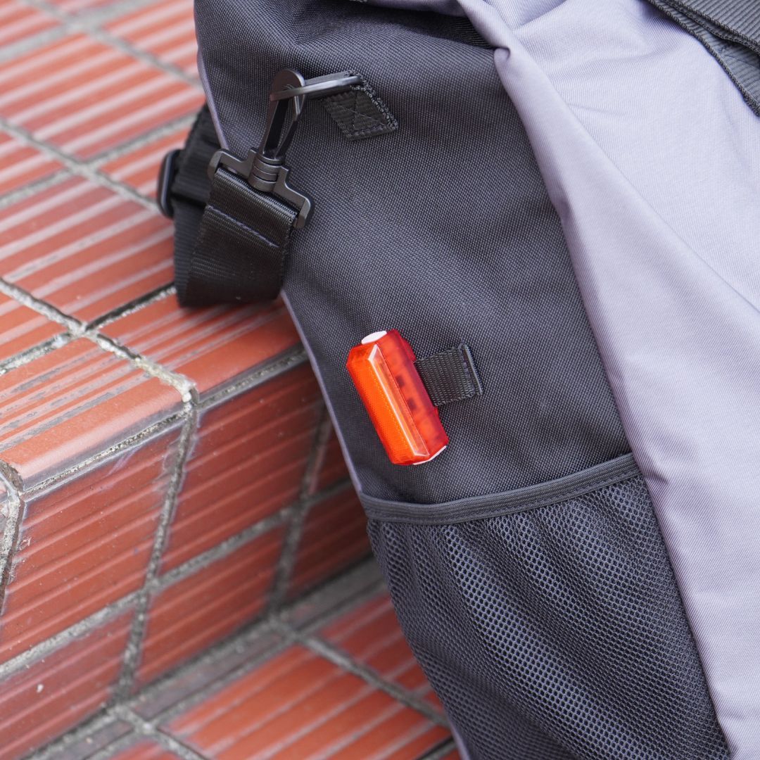 メッシュポケットに小物を入れることができますし、リアライトのループが付いています。