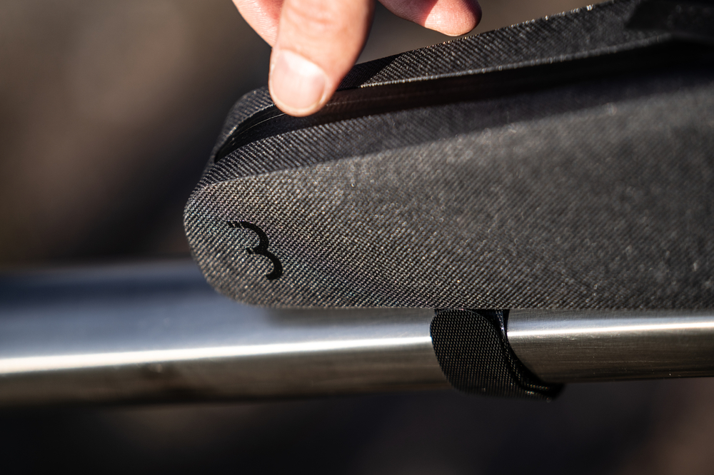 独自設計によりトップチューブ上にしっかりフィットし、3 本のベルクロストラップで確実に固定できます。