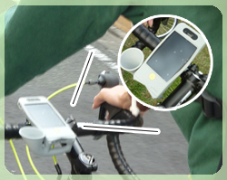 ホーンバイクに装着したiphoneにてお食事どころを検索! |
