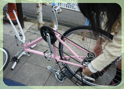 「大きいサイズよりも一回り小さいホイール。フレームがコンパクトで乗りやすい!真鍮製のベルが、見た目、音、ともにきれい。」