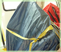 電車内ではじゃまにならないように置きます。カタカタ30分ほどゆられて立川駅に到着。 |