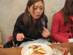 甘く見ていました… どこを探しても カフェは人でいっぱい… 体はどんどん冷え、 みんなの口数も減る減る…。 表参道から離れた場所で ようやく入れる店に ありつけました。 |