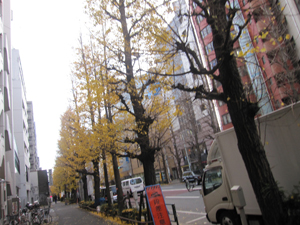 イチョウは真っ黄色できれい。 まだたっぷり葉が ついている木と 丸坊主の木と・・・ やっぱ木によって さまざまだね。 |
