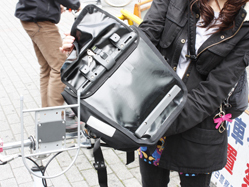 買い物をたくさんするとカゴのないスポーツバイクはつらい… でもこのバッグは荷物がたくさん入ったまま自転車へ装着。 手ぶらで運転! |