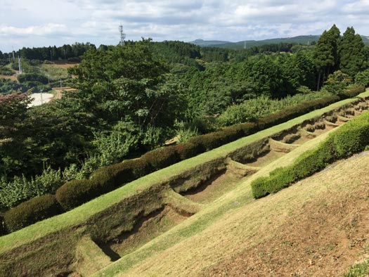 岱崎出丸の畝堀。堀の中を移動しづらいようにしたそうですが、畝の上を歩いて侵入しやすそうです。 |