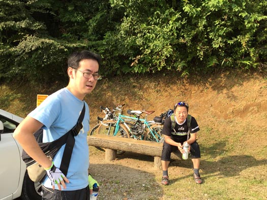 ガーサスDから箱根へ抜けるにはまだ登りがあると知らされ、この表情。たいへん素直な人たちです。 |