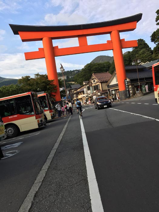 箱根神社まで下り。しかし、帰りの輪行をするためには箱根登山鉄道の駅までいかなければなりません。