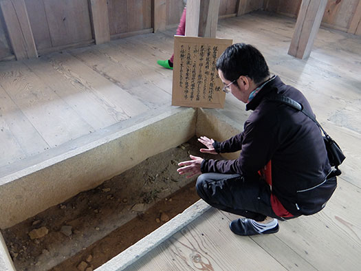 天守の中の囲炉裏、珍しいですね。籠城戦を想定していたか、グローブを忘れた自転車乗りのためか、どちらかでしょう。 |