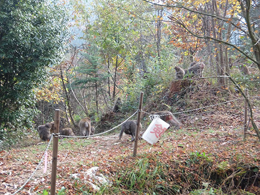 なんと、山道の途中、50匹以上の野生の猿に取り囲まれてしまいました。