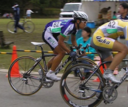舞洲クリテリウムに参戦してきました。 参加カテゴリーは、U23(1周800mコースを30周するクリテレース) 大学生とU23の実業団選手と走り、順位を争いました。 レースは、エリートカテゴリーとの混合で行われハイペースのレースとなりました。 前半より積極的にアタックするも逃がしてもらえません。 その後、6名の逃げができ約1/3の差がつく、僕はその時はメイン集団、 逃げのメンバーも良かったので行くしかないと思い、渾身のアタックで逃げ 集団に迫るも、あと数十メートルで足がいっぱいになりメイン集団へ、 逃げ集団も周回を重ねるたびに人数が絞られ差が詰まったところで、もう一度 アタックするが追いつきませんでした。その後、残り数周で逃げも捕まり、 集団スプリントの勝負になり、U23クラス2位になりました。 結果よりも、逃げに乗れなかったのが悔しく、次は、頑張りたいと 思います。