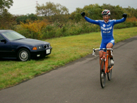 今回二日にわたり2ヒート制で行われたこの種目をともにトップフィニッシュでき、気持ちも乗った状態でシクロクロス本レースに挑む事ができた。C1は5名が出走、C2?L、Jまで同時スタートでスピードがのったまま二連シケインに突入する。去年全日本が苫小牧で開催された効果で道内C1、2の選手のレベルは確実に上がっており、序盤から大きく逃げる事は許してくれない。